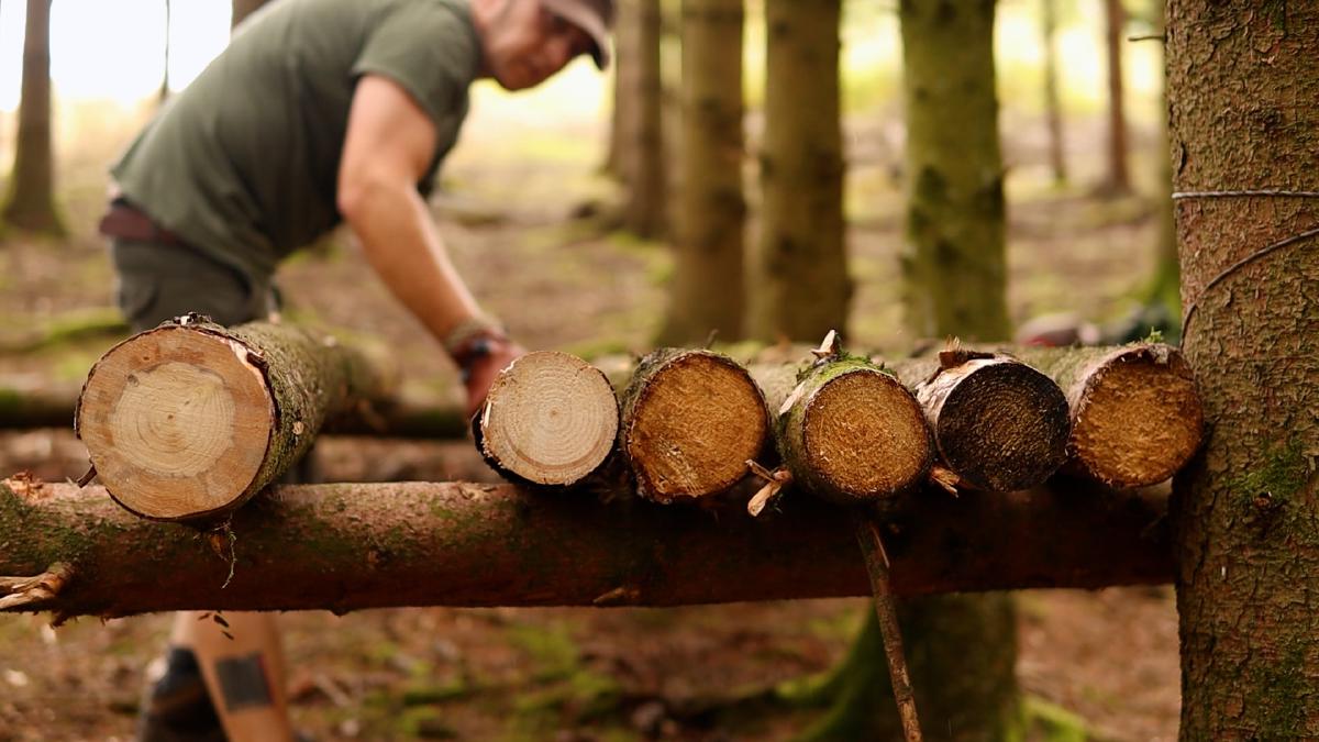 Der gesamte Bau hat vielleicht anderthalb Stunden gedauert. Kein Hetzen, kein Stress. Einfach ruhige Arbeit im Wald, das Geräusch der Säge und ab und zu ein Knacken beim Spalten.